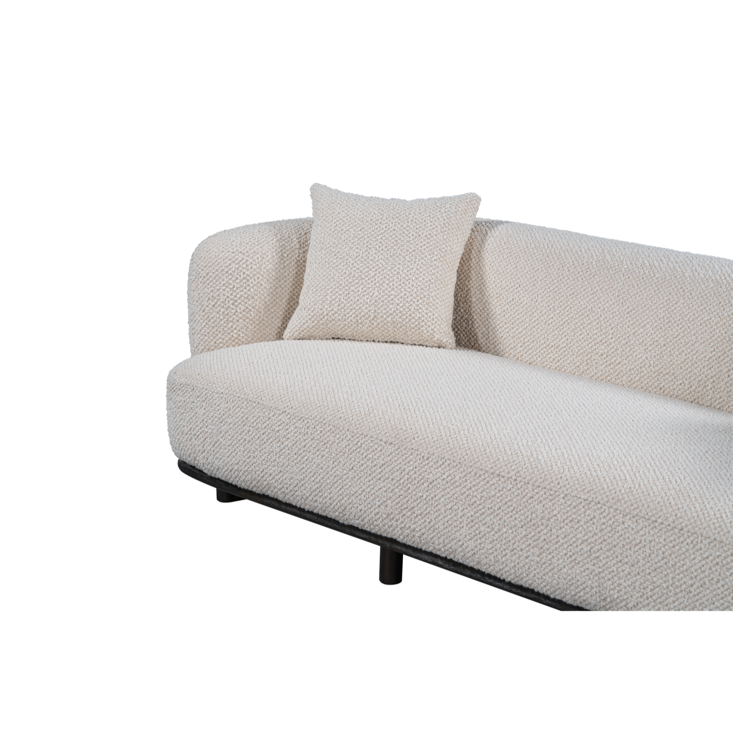 Aldrich Sofa is covered with a performance fabric in the colour Pale Parchment.  The Ash wood has a Dark Cinder finish.
